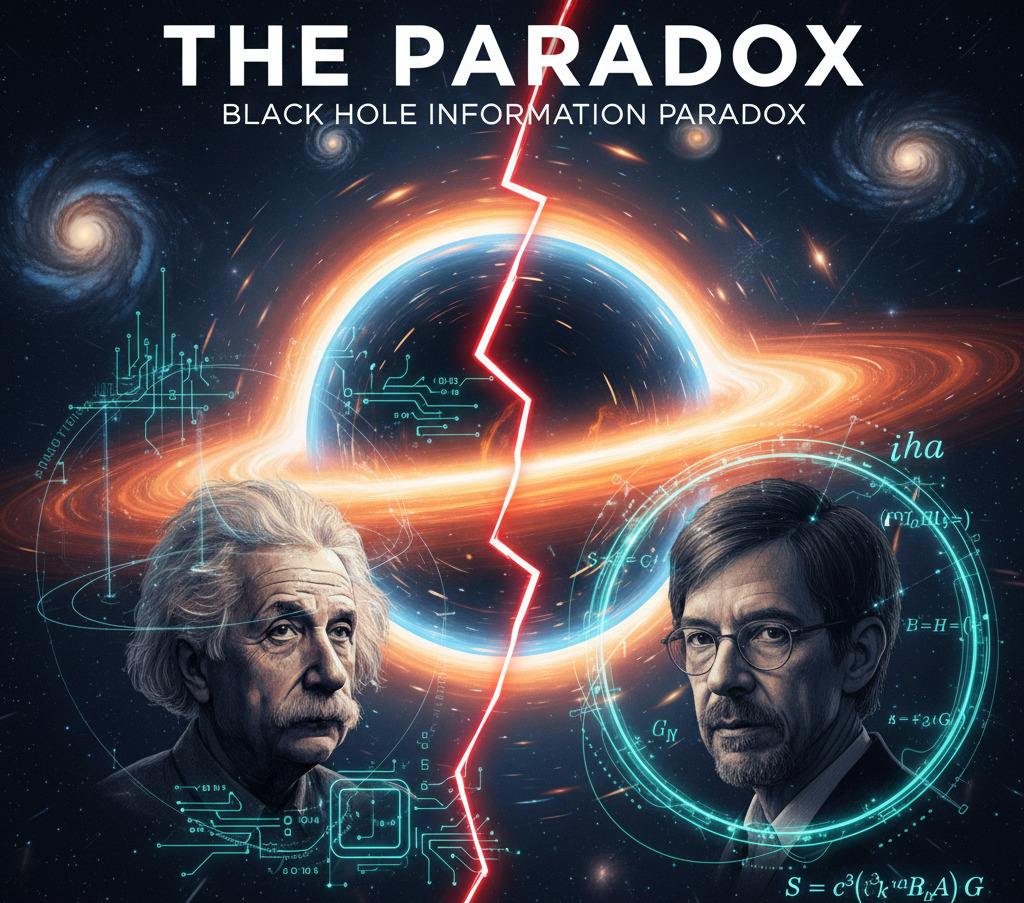 The Black Hole Information Paradox exists at the catastrophic intersection of 20th-century physics’ two greatest achievements: Albert Einstein’s General Theory of Relativity (GR) and the laws of quantum mechanics. The paradox emerges because these two foundational theories provide an irreconcilable description of reality. General Relativity, a theory of gravity, creates a perfect prison for information, while quantum mechanics, a theory of matter and energy, mandates that information can never be destroyed.